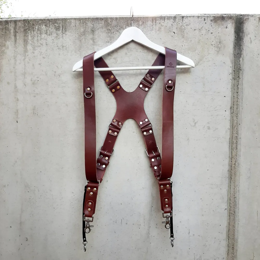 Na popruh z vysoce kvalitní hovězí usně připnete dva fotoaparáty. Zádový systém popruhu je při nošení velmi pohodlný a rovnoměrně rozděluje zátěž, díky čemuž se vyhnete bolesti krku a ramen. Jednotlivé popruhy mají šířku 38 mm.