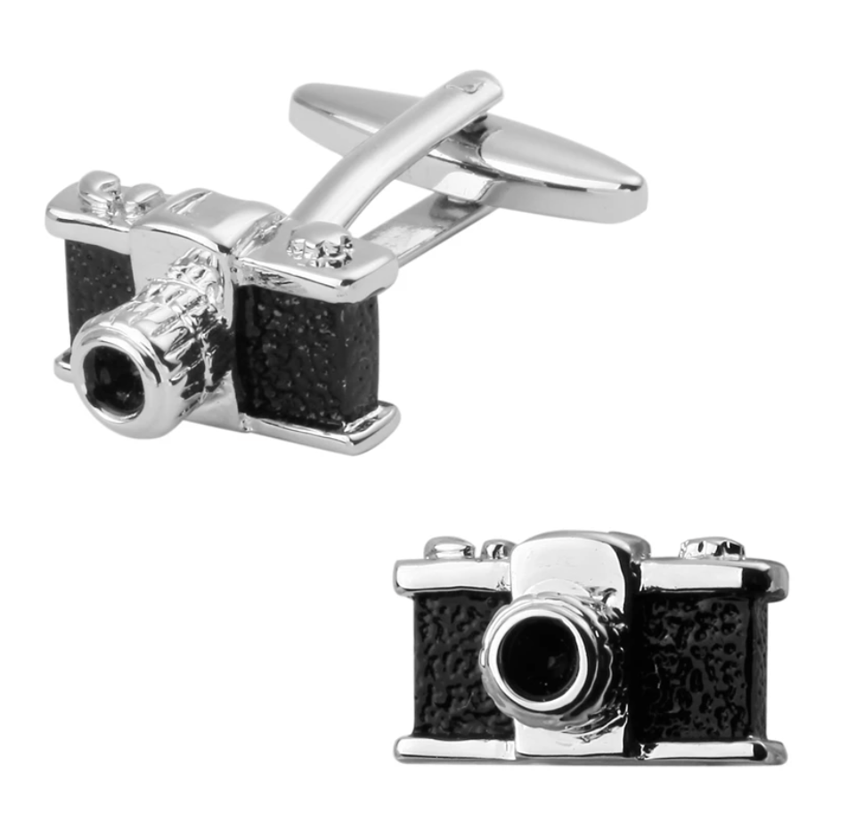 Manžetové knoflíčky ve tvaru fotoaparátu. Jedná se o skvělý dárek k různým příležitostem nebo jako milé překvapení pro vaše kamarády, klienty či zákazníky, kteří milují fotografování.